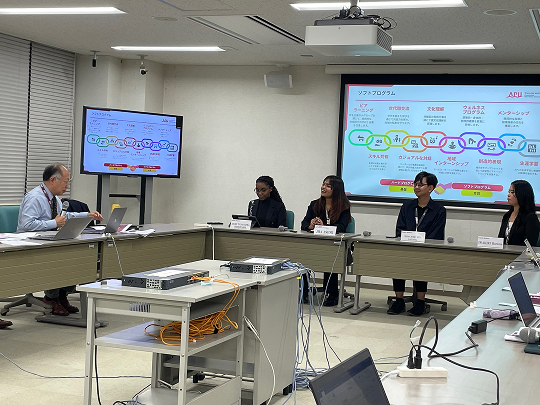 On Monday, October 27, a Midterm Report Meeting by the APU Student Future Visionary Vice President and Summit Members was held on the APU campus. The purpose of the meeting was to share their progress and deliberation outcomes to date with APU’s executives regarding the initiative’s core objective, envisioning the APU campus as a place to realize the Lifelong Learner (LLL) concept, and to receive guidance on future directions.