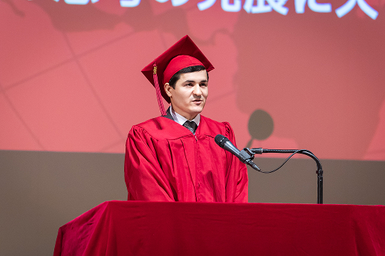 Representing the graduate students, Rustam Abduqayum (Graduate School of Asia Pacific Studies, Tajikistan) addressed the audience: