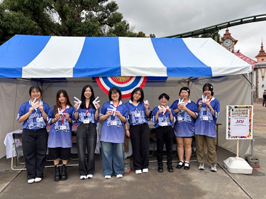 On Sunday, October 19, 2025, APU took part in the inclusive theme park event Harmony for the Future – What We Can Do Together for the Future, held at Harmonyland, the Sanrio character park in Hiji Town, Oita Prefecture. APU contributed original university merchandise as prizes for a raffle and hosted cultural experience booths led by student organizations, offering visitors opportunities to engage with diversity firsthand.
