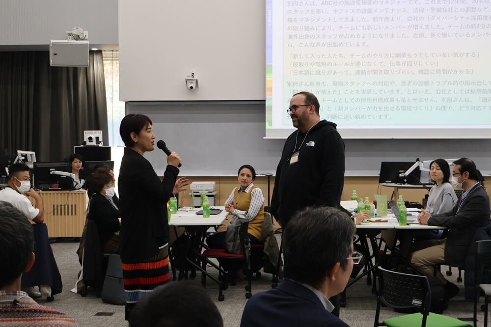 The second part focused on applying the theory through case studies addressing issues arising from diversity. Representatives from each group performed demonstrations based on the stages of the intercultural development continuum, and then received feedback from Dr. Maeker. Through this exercise, she emphasized that discussions within organizations are influenced by the “developmental diversity” of participants and highlighted the importance of recognizing this factor. She also encouraged participants to understand both the similarities and differences between themselves and others and to proactively choose how to engage with others. In the third part, individual consultations were held based on topics requested by participants.