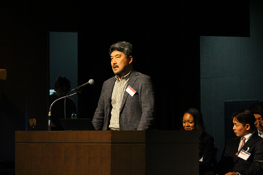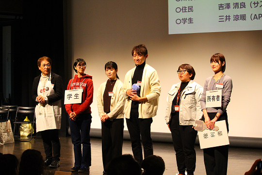 Next, Professor YOSHIZAWA Kiyoyoshi, along with representatives from the Oita Prefectural Government’s Urban and Community Development Promotion Division (Mr. Tatsumoto and Ms. Kikugawa), the Beppu City Urban Planning Division (Mr. Ono and Mr. Kitagaki), and APU student Ms. Mitsui, presented their collaborative efforts addressing Oita Prefecture’s vacant house issue. Using a humorous skit to illustrate common patterns in vacant house management, the presenters filled the venue with laughter. They also introduced a uniquely Beppu-like case in which natural hot spring water emerged from underground in the yard of a vacant home—showcasing the challenges and opportunities in a city rich with hot spring sources.