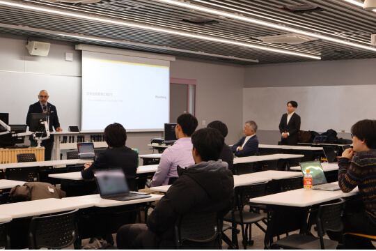 At the opening of the event, Mr. Tweeboom addressed the students by reflecting on his own career: “Throughout my career, I have worked with banks, government agencies, and service providers around the world, including here in Japan. In today’s era of increasing uncertainty, what matters most is innovation, decision-making capability, and resilience. Transformation cannot be driven unilaterally—it begins with listening, understanding challenges on the ground, and working together. As AI and digital technologies rapidly evolve, my message to you is simple: Stay curious. Stay hungry. I believe that a commitment to continuous learning is what will allow you to thrive in a time of change and help shape the future of Japan and the next generation.”