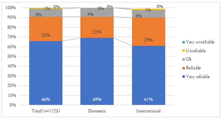As a whole, 91% of students responded positively ("Very reliable" and "Reliable" combined), indicating that a certain percentage of residents appreciate the dormitory management, particularly that led by Resident Assistants (RA).